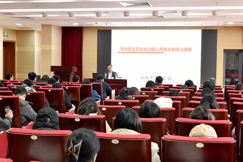 在主旨讲座环节,山东大学方雷教授作了题为“党内民主带动基层全过程人民民主”的主旨报告。方雷从价值定位、运行机理、互动关系和现实路径四方面阐述了党内民主如何带动基层全过程人民民主。东北大学李兆友教授作了题为“市域社会治理现代化的动因与挑战”的主旨报告。李兆友阐述了市域社会治理现代化的动因和挑战,提出市域社会治理的现代化需要治理主体在治理理念、治理体系、治理能力层面不断探索和实践,不断推进社会治理结构的优化和社会秩序的稳定。