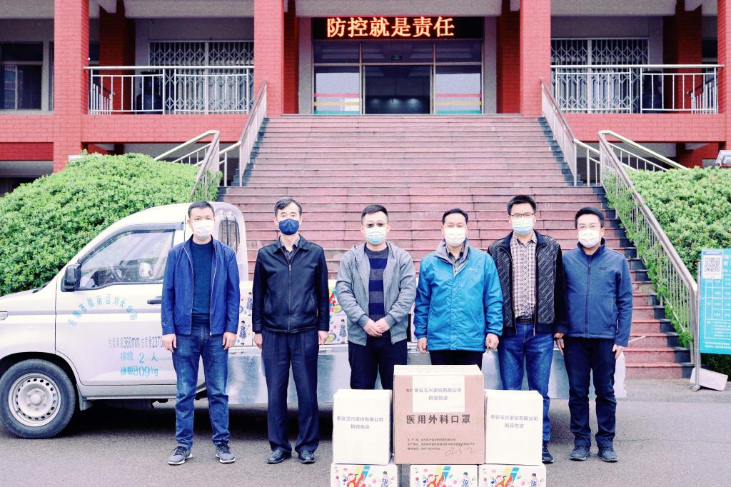 泰安玉兴家纺向泰安校区捐赠疫情防控物资